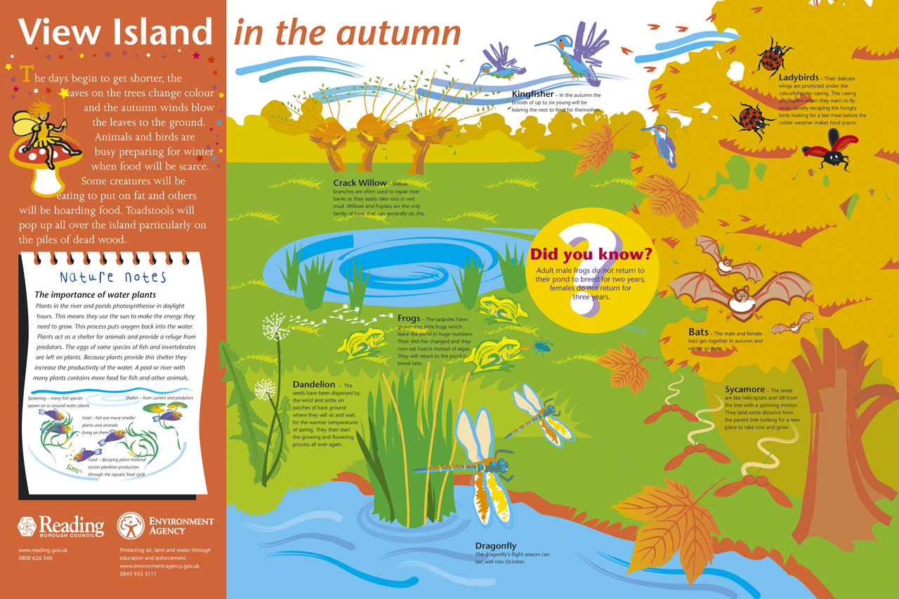 Illustration was chosen to bring a sense of fun and character to the learning experience of  young visitors. This also allowed the changing seasons to be depicted in a bright and vibrant manner.
